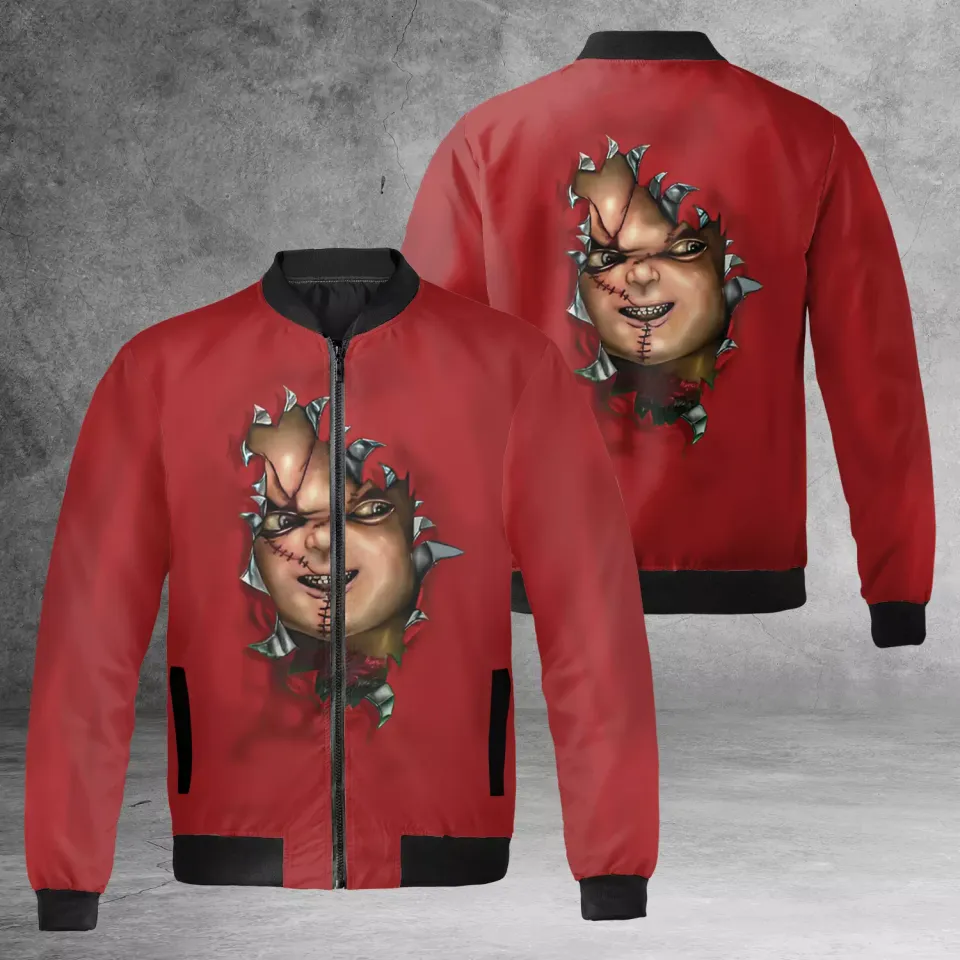 You are viewing one of the trendiest products Chucky Doll Horror Killer Wanna Play Chucky Cracking Red Themed Jacket For Women belong theme Men's Bomber Jackets at Printblur