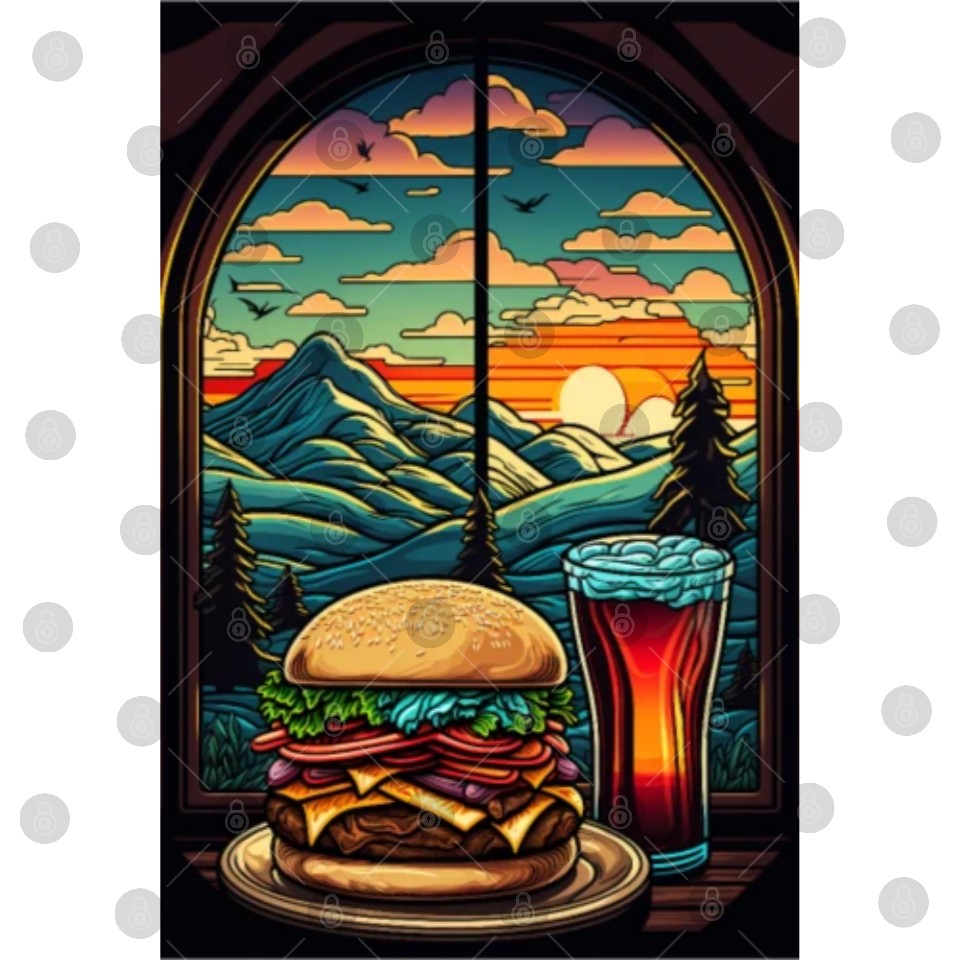 Buy eye-catching Church window with hamburger burger and drink Digital Files or see more Digital Files products at Printblur shop now to explore many surprises from our shop!