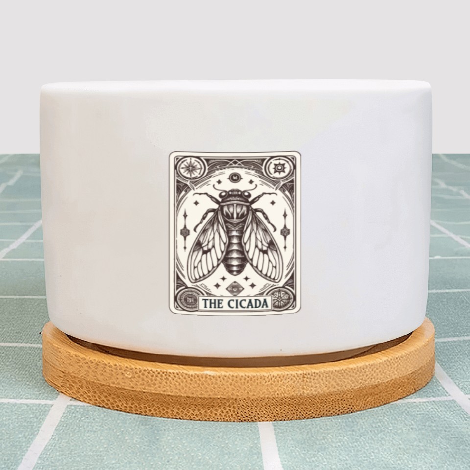 You're taking a peek at the product Cicada Tarot Card Brood Emergence Plant Pots For WHITE belong theme Plant Pots at Printblur