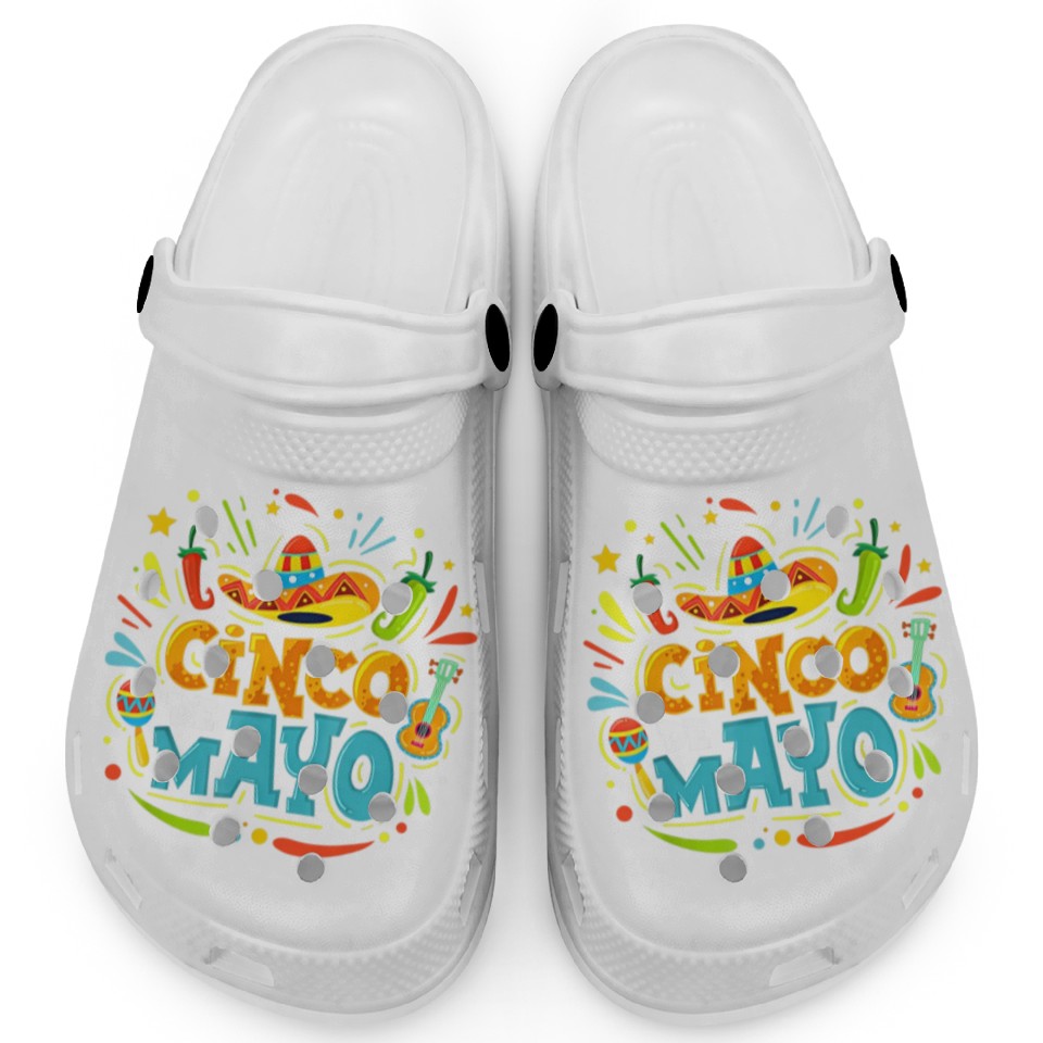 The product unique design you searched for is Cinco De Mayo Fiesta Surprise Camisa 5 De Mayo Clogs For Kids WHITE belong theme Clogs at Printblur