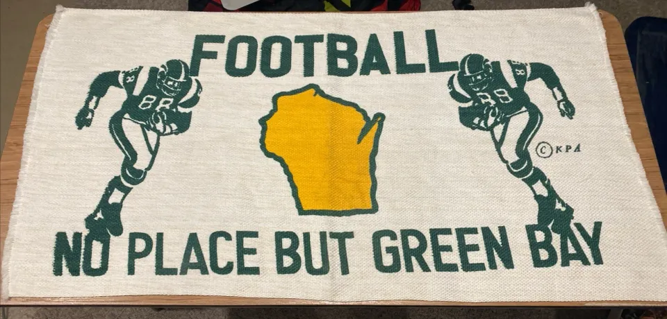 You are viewing an exclusive and elegant product Circa 1960s Green Bay Packers Area Rug/Doormat For belong theme Doormats at Printblur