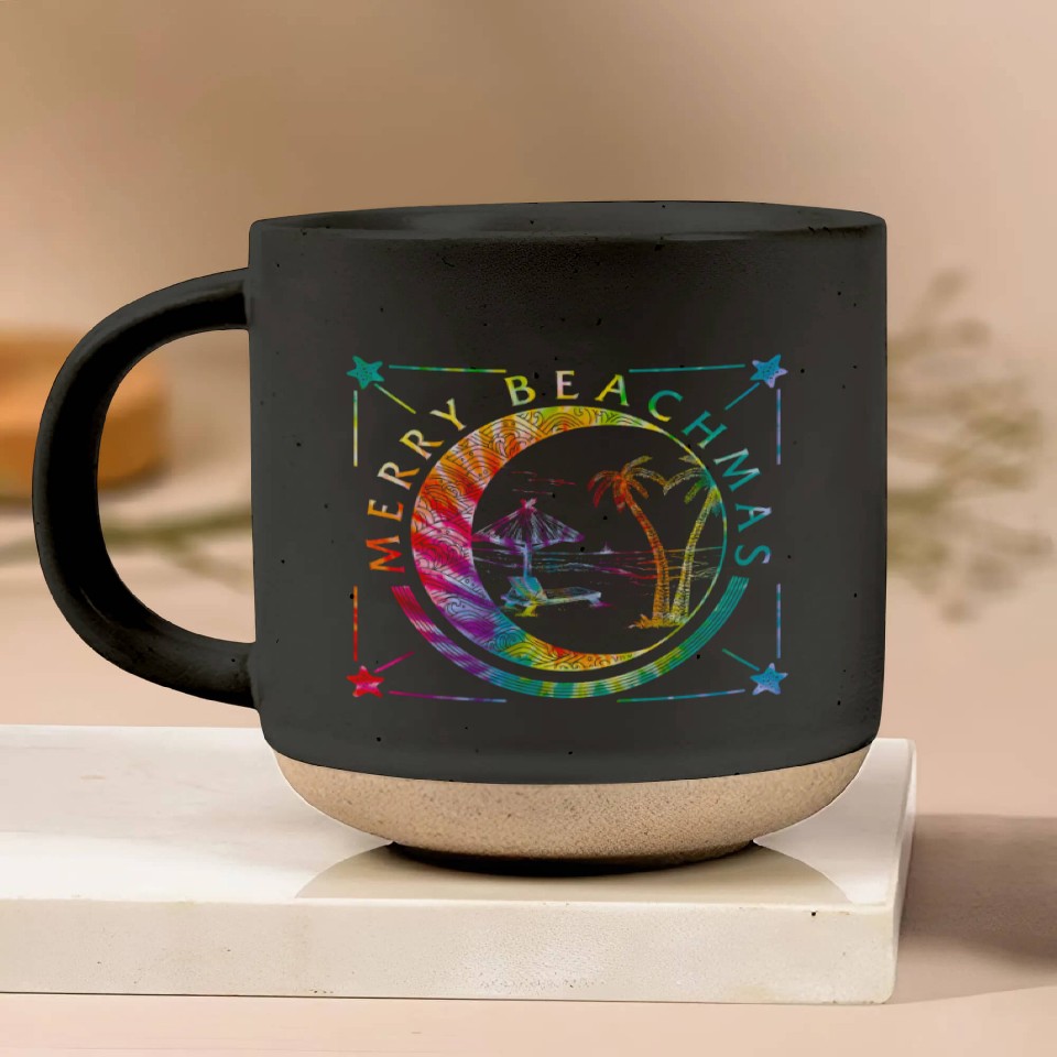 You're taking a peek at the product Coastal Beach Christmas In July Pottery Mugs, Merry For Black belong theme Pottery Mugs at Printblur