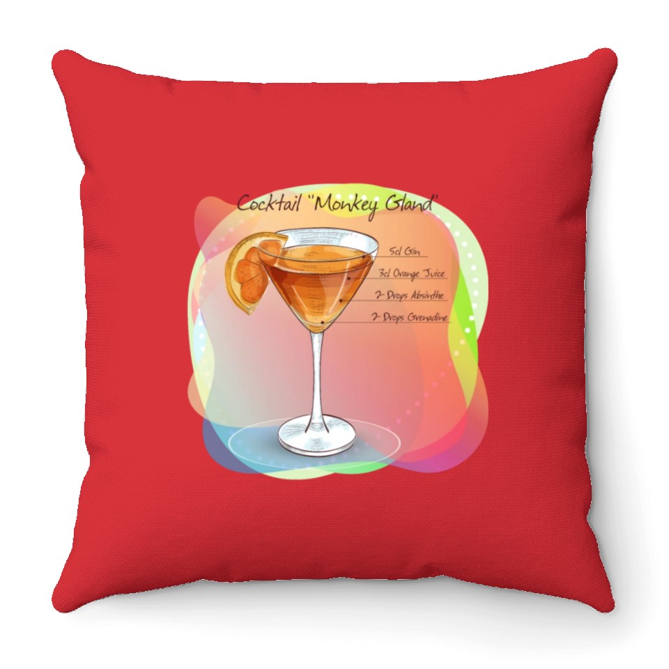 The product unique design you searched for is Cocktail Monkey Gland Recipe Gin Orange Juice Throw Pillows For Cover Only Red belong theme Throw Pillows at Printblur