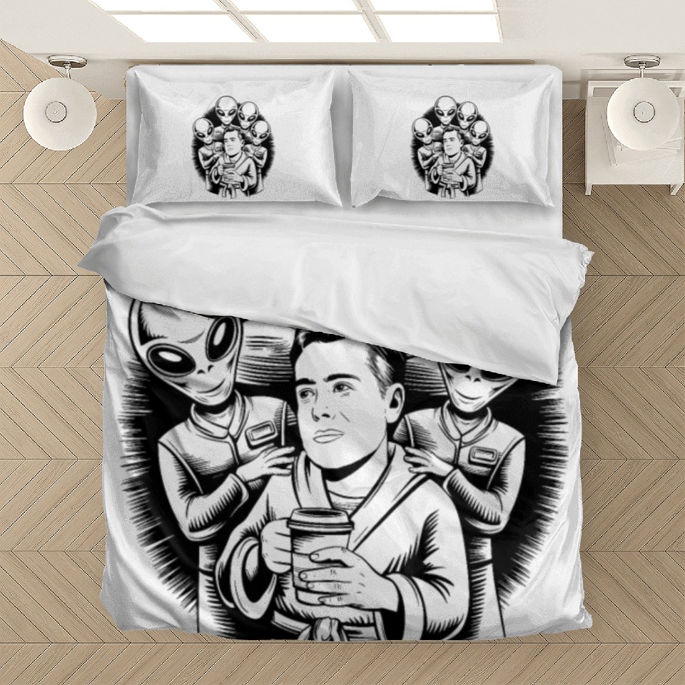 You are shopping for a stunning and trendy product Coffee Alien Abduction Design Black Bedding Sets For WHITE belong theme Bedding Sets at Printblur