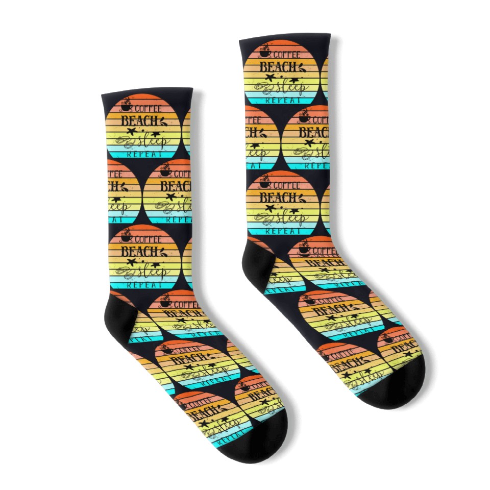 Own fascinating Coffee Beach Sleep Repeat Socks or see more Socks products now from Printblur shop to enjoy your shopping time!