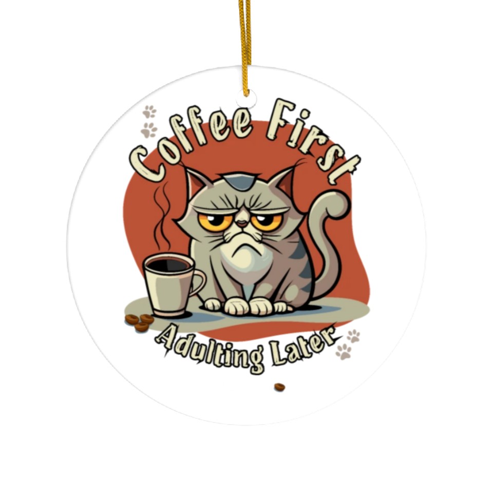 You are shopping for a stunning and trendy product Coffee First - Adulting Later (...maybe) Ceramic Ornaments For WHITE belong theme Ceramic Ornaments at Printblur