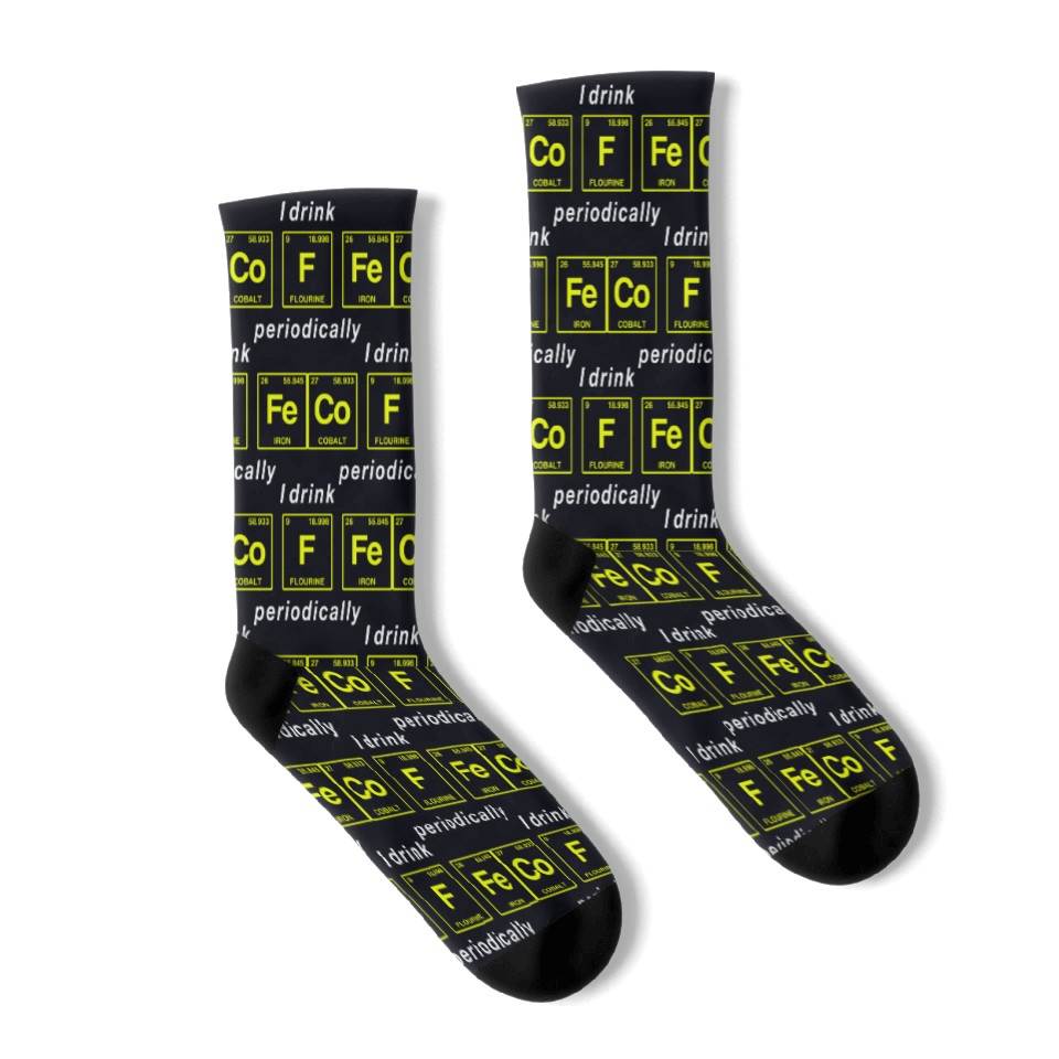 Buy stunning COFFEE - with elements of the periodic table Socks or see more Socks products at Printblur right now to receive many amazing discounts!