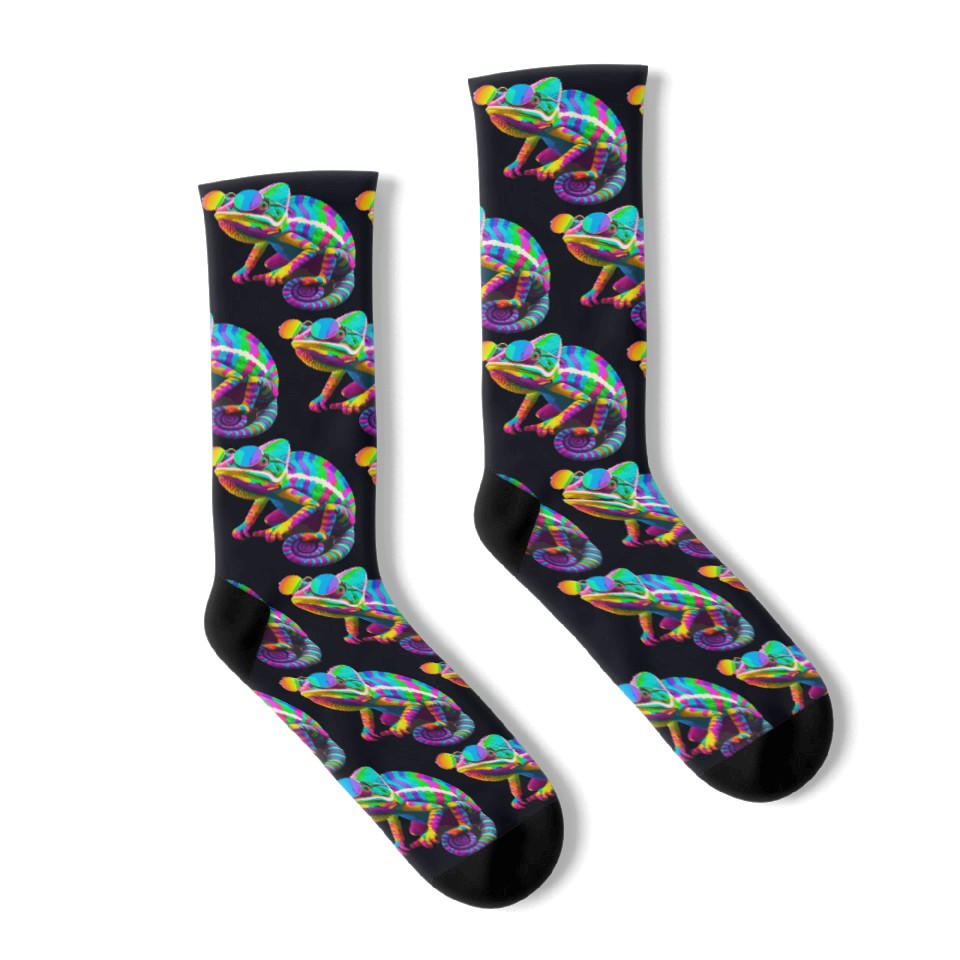 Shop for impressive Colorful Chameleon with Sunglasses Socks or see more Socks products right now on Printblur to enjoy your happiness!
