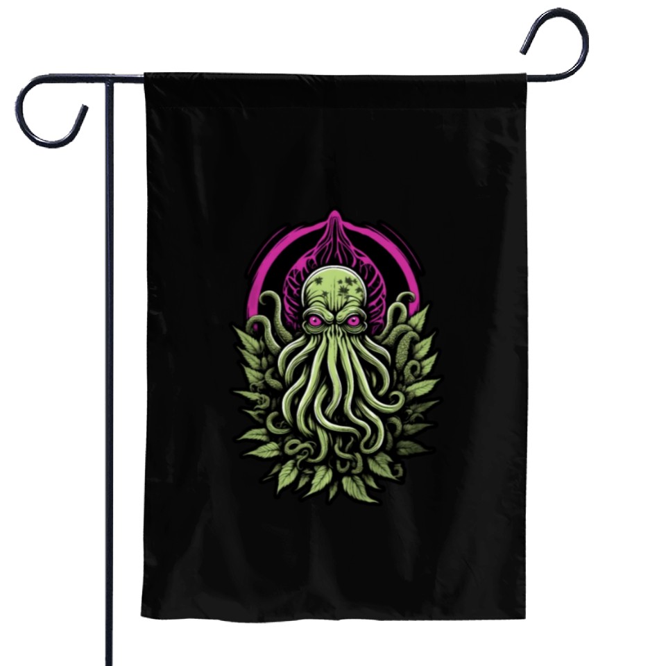 Shop for attractive Colorful Cthulhu Garden Flags with Marijuana Leaves or see more Garden Flags products on https://printblur.com right now!