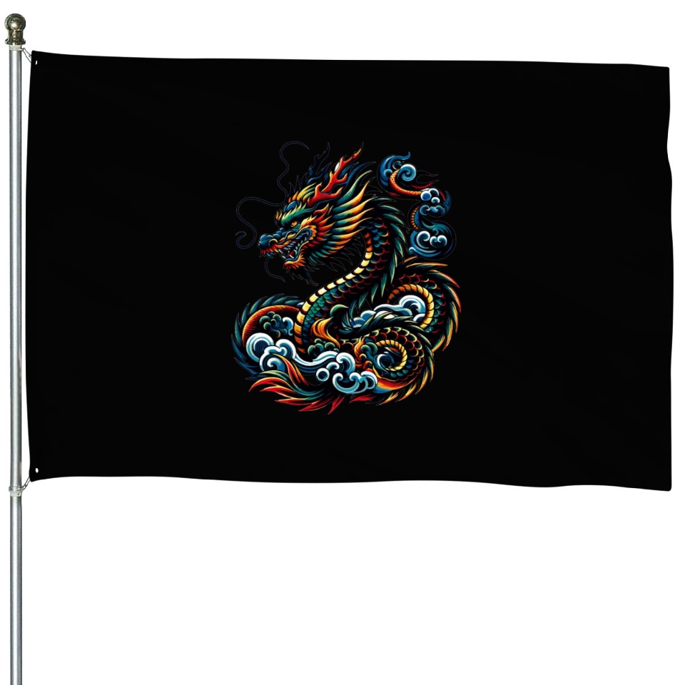Buy eye-catching Colorful Dragon Zodiac Chinese Dragon Art House Flags or see more House Flags products at Printblur shop now to explore many surprises from our shop!