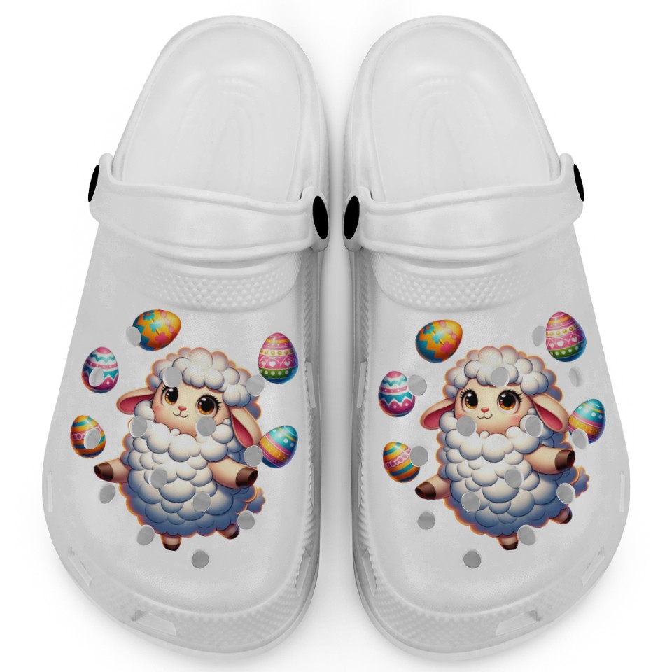 You are shopping for a stunning and trendy product Colorful Easter Egg Juggling Lamb Cartoon Clogs For Kids WHITE belong theme Clogs at Printblur