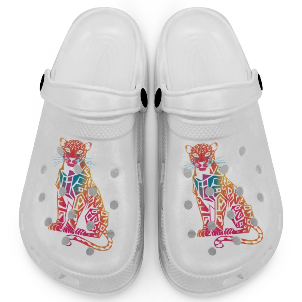 Colorful Geometric Jaguar Artwork for Bold Clogs