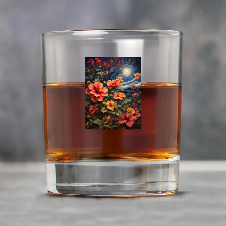 You're searching for a one-of-a-kind product Colorful Hibiscus Under Starry Night Sky Rock Glasses For belong theme Rock Glasses at Printblur