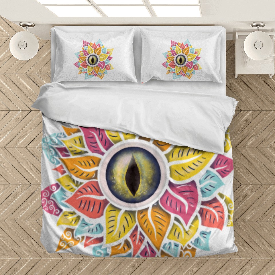You are viewing an exclusive and elegant product Colorful Reptile Eye Flower Bedding Sets For WHITE belong theme Bedding Sets at Printblur