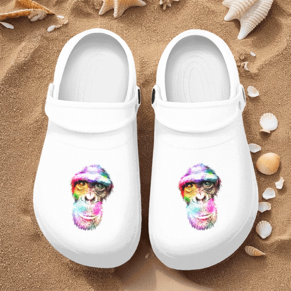 You are shopping for a stunning and trendy product Colorful Retro Realistic Monkey Face Funny Graphic Nurse Clogs For Men WHITE belong theme Nurse Clogs at Printblur