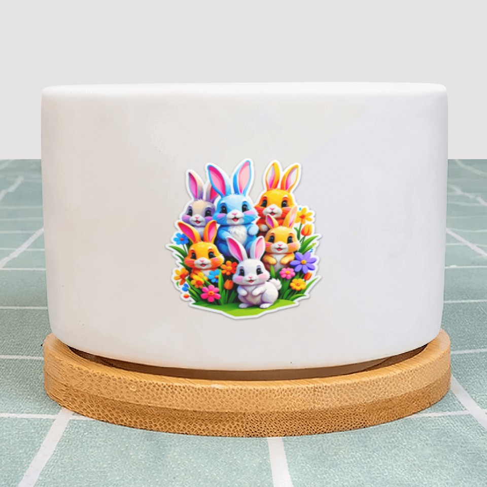 Colorful Spring Celebration with Cute Bunnies Plant Pots