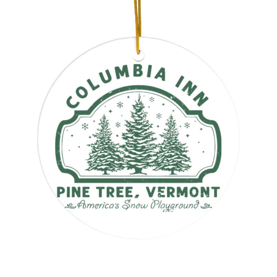 You're searching for a one-of-a-kind product Columbia Inn Pine Tree Vermont White Christmas Ceramic Ornaments For WHITE belong theme Ceramic Ornaments at Printblur