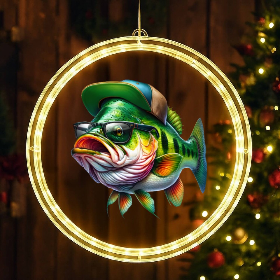 Buy eye-catching Cool Bass Fish with Green Hat and Glasses LED Christmas Window Lights or see more LED Christmas Window Lights products at Printblur shop now to explore many surprises from our shop!