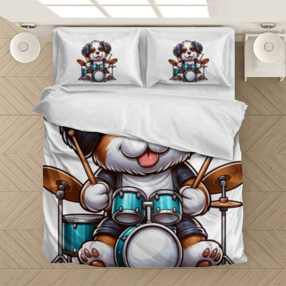 You're searching for a one-of-a-kind product Cool Bernese Mountain Dog Drummer Design Bedding Sets For WHITE belong theme Bedding Sets at Printblur