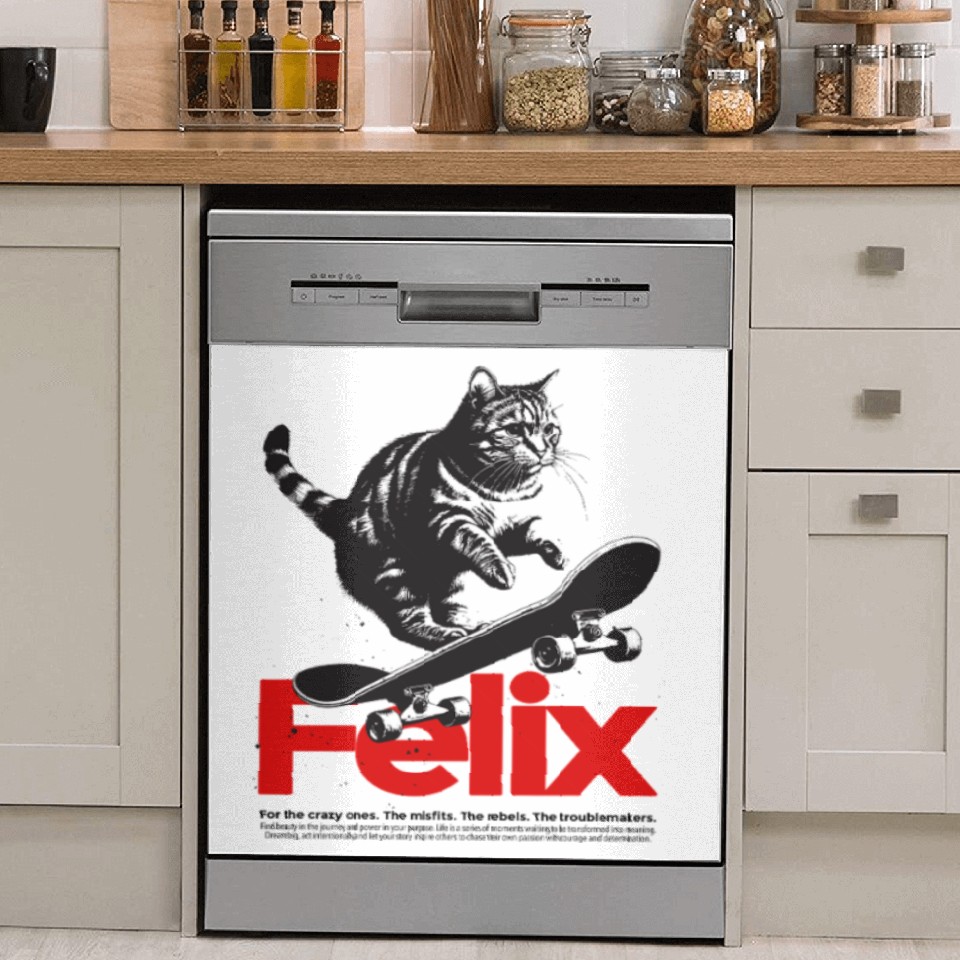 The product unique design you searched for is Cool Cat Skateboard with cute Boy Name FELIX Dish Washer Covers For WHITE belong theme Dish Washer Covers at Printblur