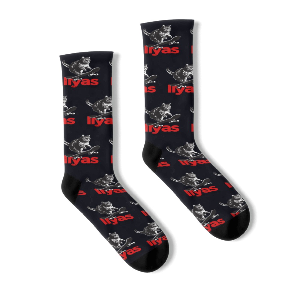 You are contemplating one of the best-selling products Cool Cat Skateboard with cute Boy Name ILYAS Socks For Black belong theme Socks at Printblur