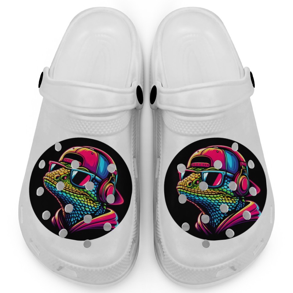 Buy stunning Cool gecko lizard with dj headphones Clogs or see more Clogs products at Printblur right now to receive many amazing discounts!