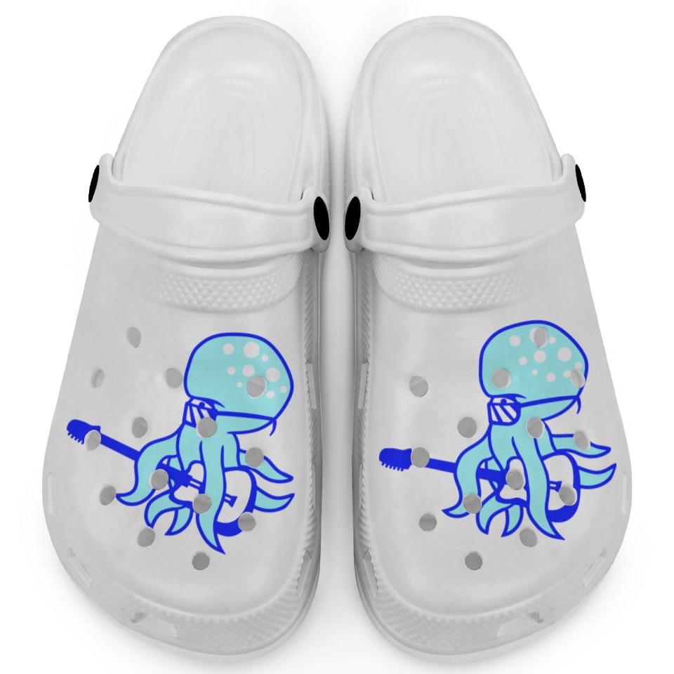 You are shopping for a stunning and trendy product Cool Octopus Kraken Squid Plays Guitar Guitarist Clogs For Kids WHITE belong theme Clogs at Printblur