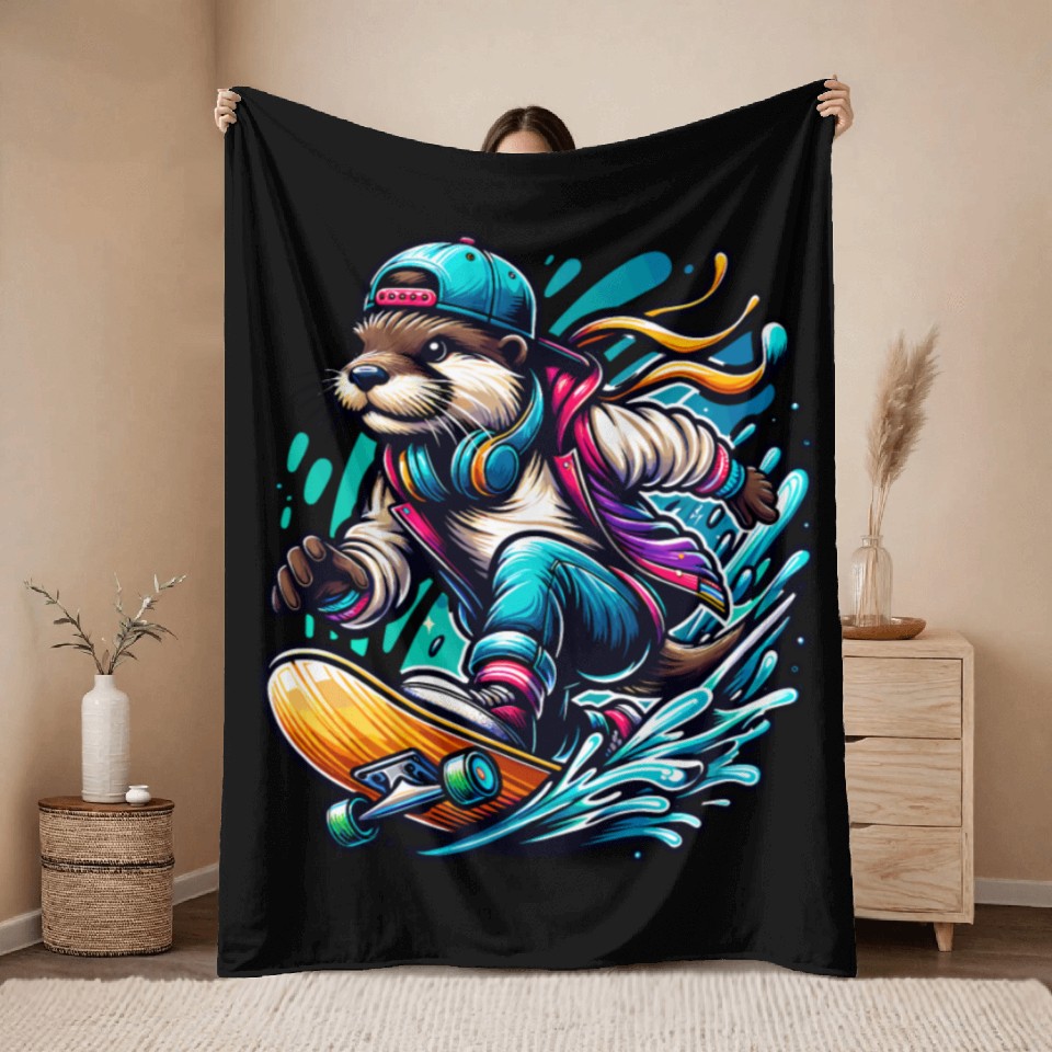 You are viewing one of the trendiest products Cool Otter Skateboarding with Headphones Vibrant Throw Blankets For Black belong theme Throw Blankets at Printblur
