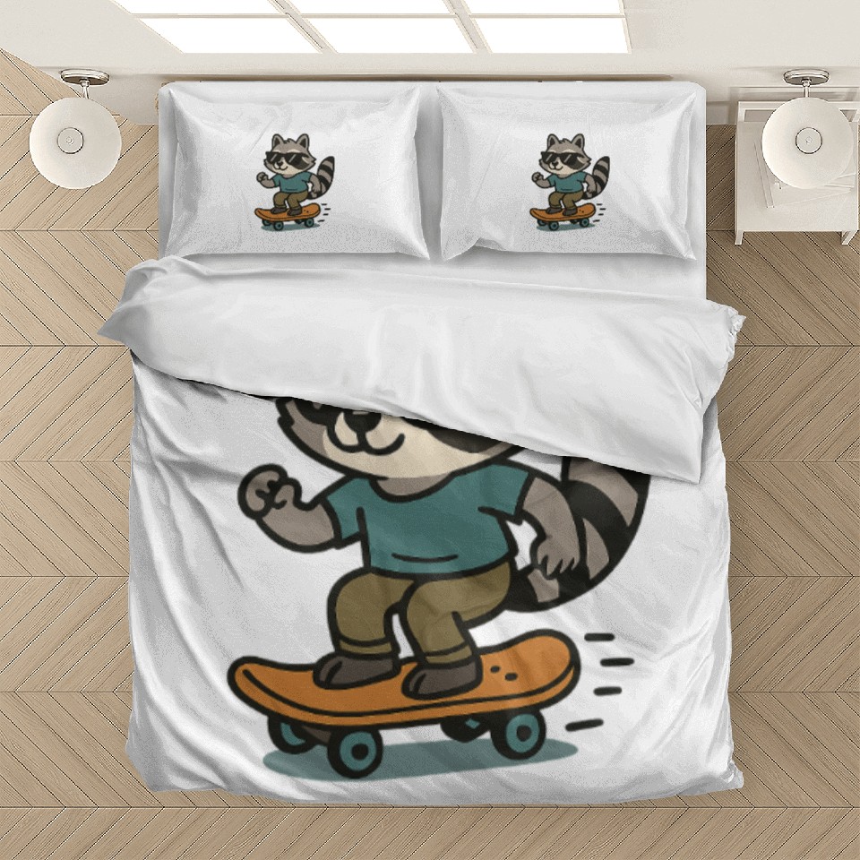 You are viewing an exclusive and elegant product Cool Raccoon on Skateboard Bedding Sets For WHITE belong theme Bedding Sets at Printblur