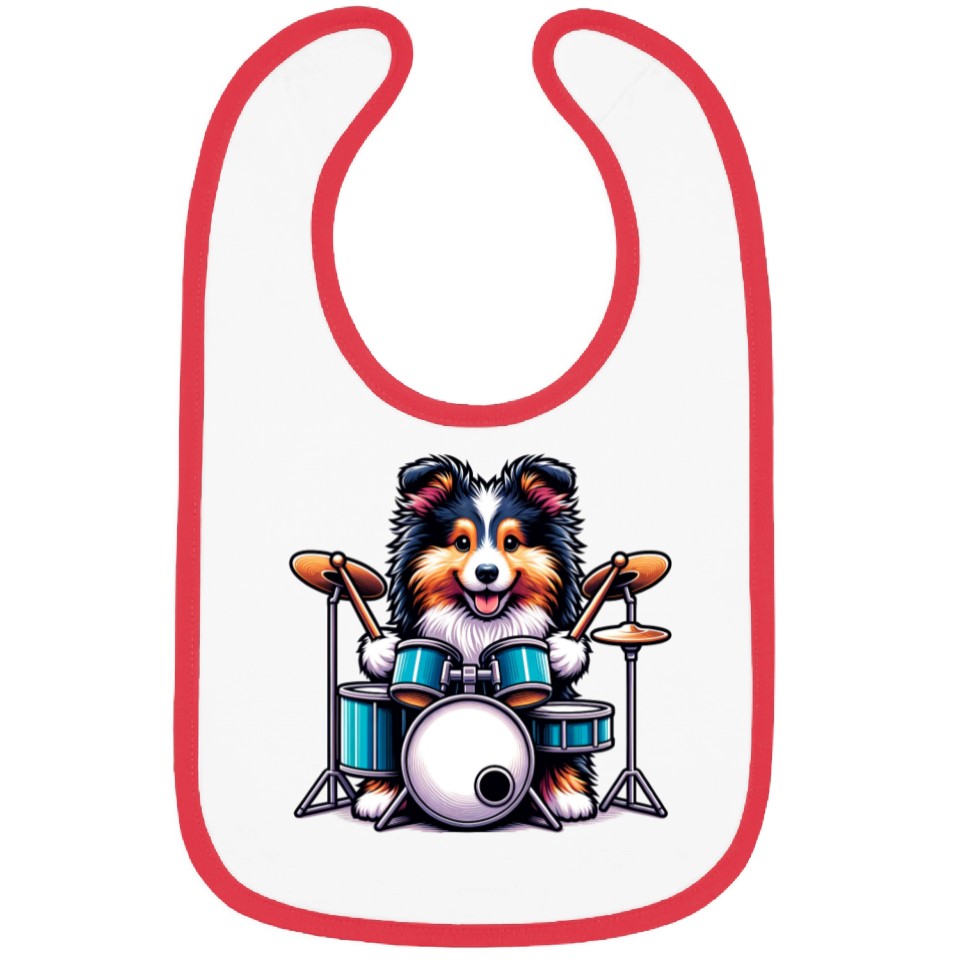 Cool Sheltie Puppy Drummer Design Bibs