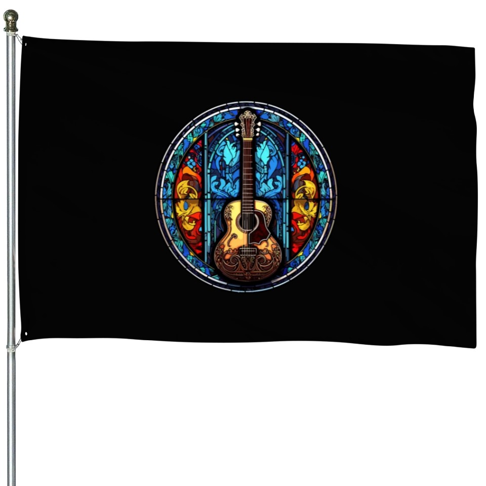 Shop for attractive Cool Stained Glass Art Dog - Abstract Mosaic Guita House Flags or see more House Flags products on https://printblur.com right now!