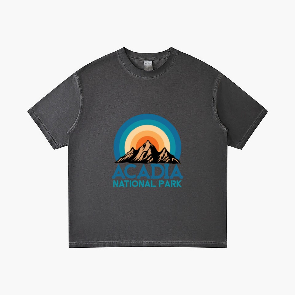 The item hot trend you're looking at is Cool Vintage Retro Acadia National Park Mountain Gradient T Shirts For Men Washed Black belong theme Gradient T-Shirts at Printblur