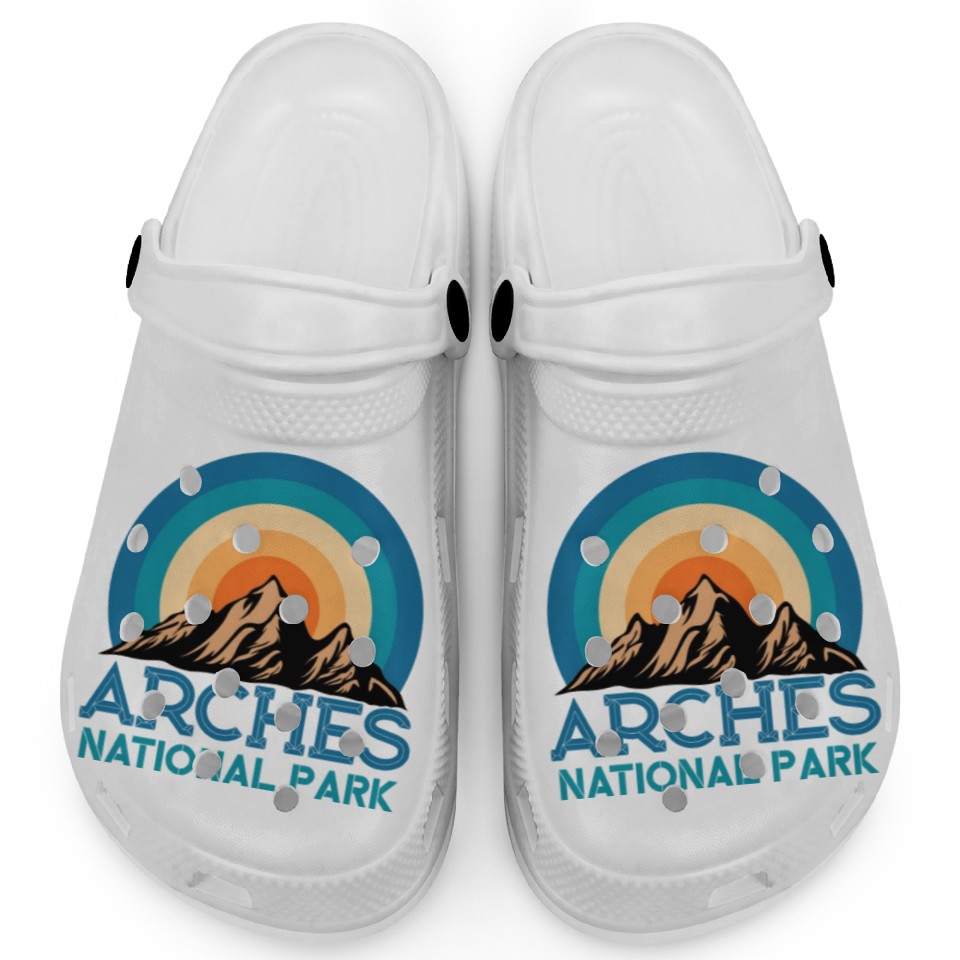 Buy eye-catching Cool Vintage Retro Arches National Park Mountain Clogs or see more Clogs products at Printblur shop now to explore many surprises from our shop!