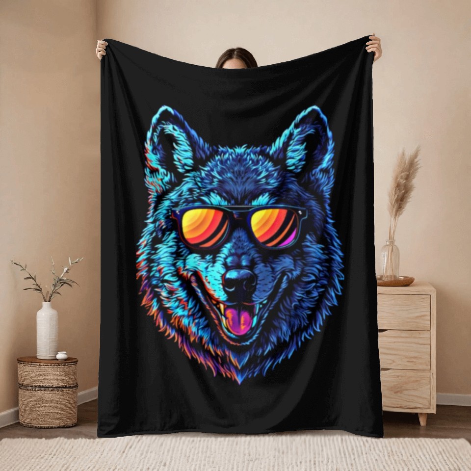 Buy eye-catching Cool Wolf Face Blue Wolf Wearing Sunglasses Throw Blankets or see more Throw Blankets products at Printblur shop now to explore many surprises from our shop!