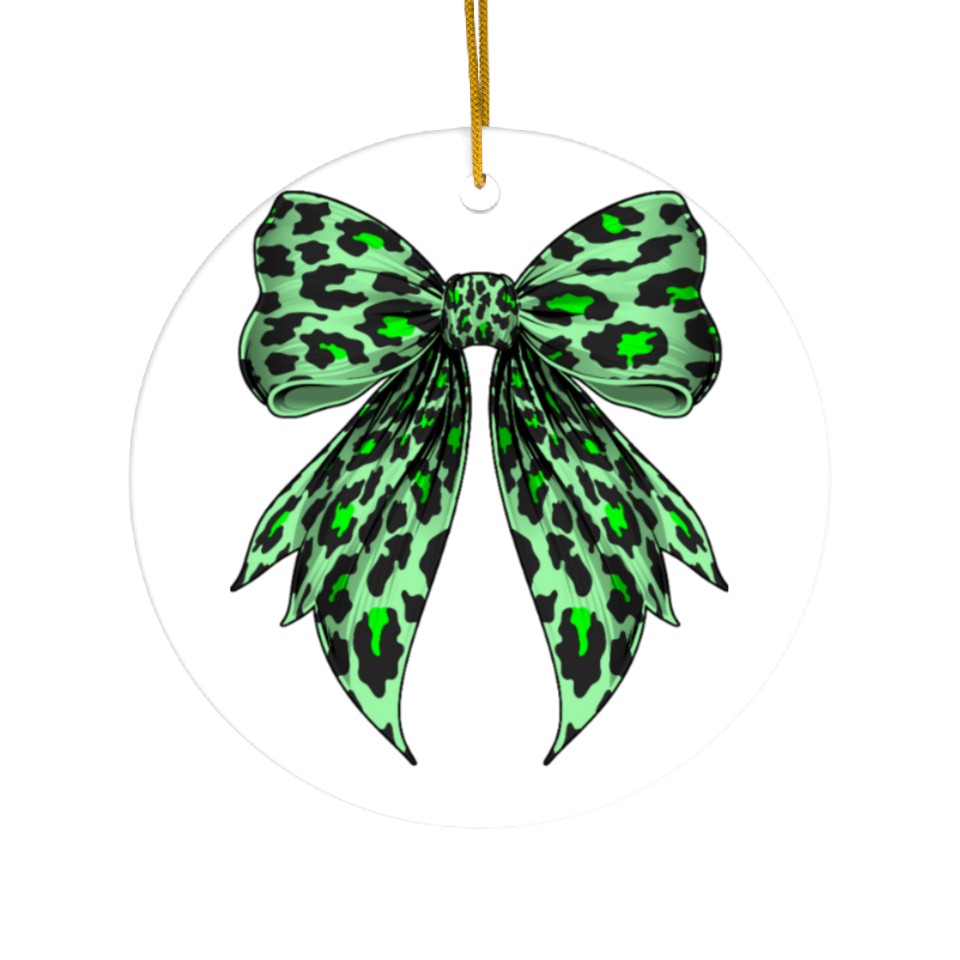 You are shopping for a stunning and trendy product Coquette Bow Cheetah Animal Pattern Lime Green Ceramic Ornaments For WHITE belong theme Ceramic Ornaments at Printblur