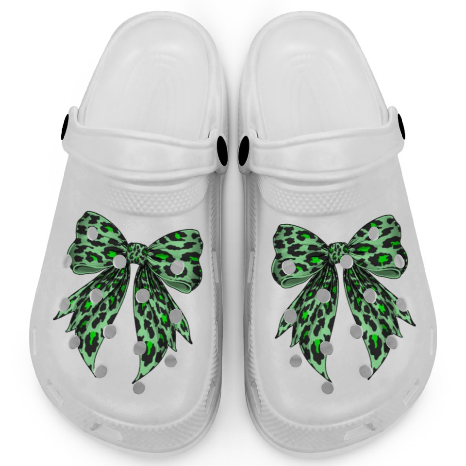 Coquette Bow Cheetah Animal Pattern Lime Green Clogs