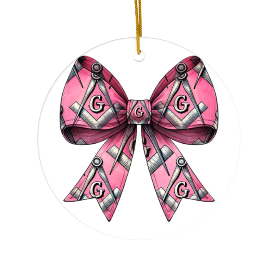 You're taking a peek at the product Coquette Bow Freemason Symbols Freemasonry Mom Ceramic Ornaments For WHITE belong theme Ceramic Ornaments at Printblur