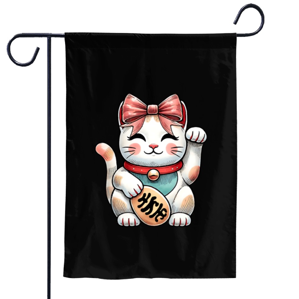 Shop for attractive Coquette Bow Maneki Neko Japanese Cat Lucky Pink Garden Flags or see more Garden Flags products on https://printblur.com right now!