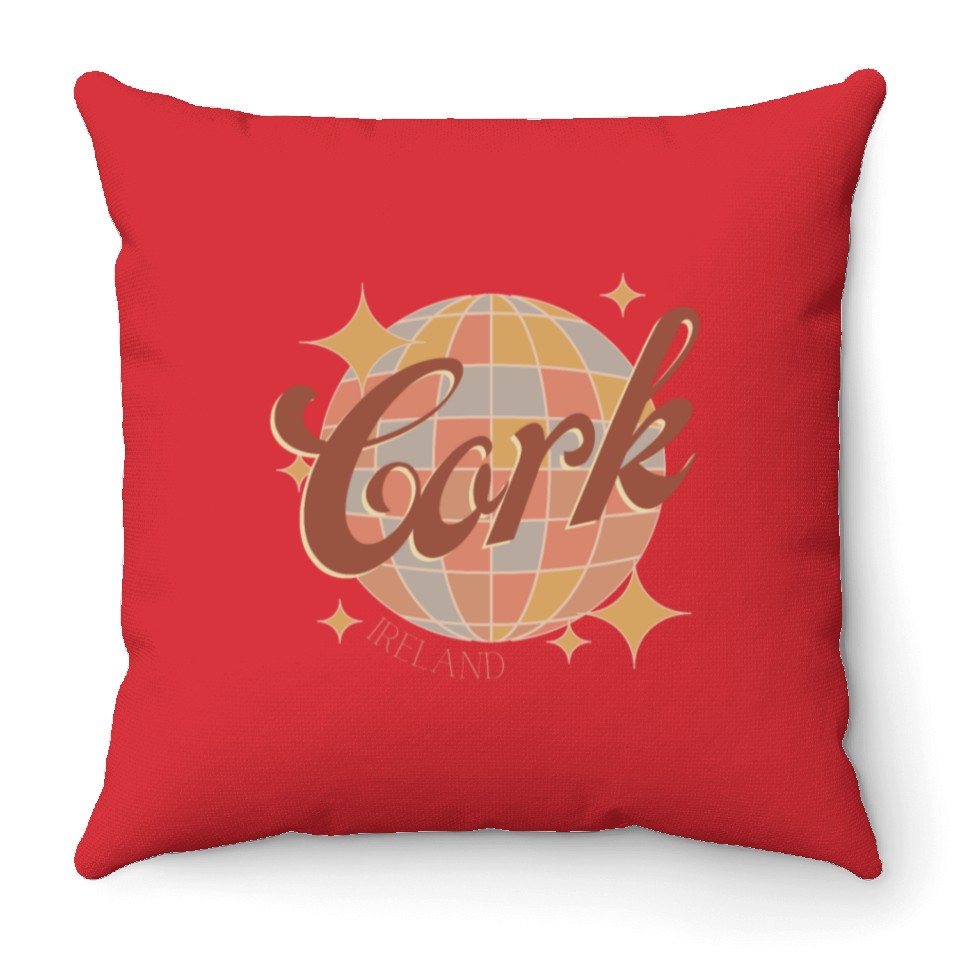 You are seeing a unique and impressive product Cork City Ireland Retro Vintage Disco ball design Throw Pillows For Cover Only Red belong theme Throw Pillows at Printblur