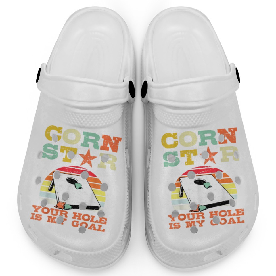 Shop for attractive Corn Star Your Hole is My Goal Vintage Cornhole Clogs or see more Clogs products on https://printblur.com right now!