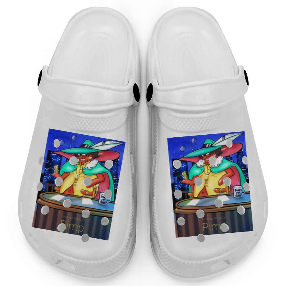 You are viewing an exclusive and elegant product Cornbread Shrimp Da' Pimp Clogs For Kids WHITE belong theme Clogs at Printblur
