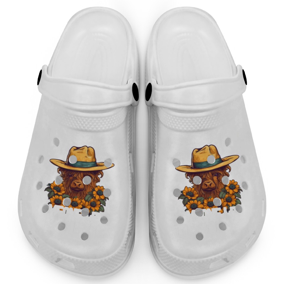 Cory Heifer Highland Cow With Sunflowers Farm Clogs