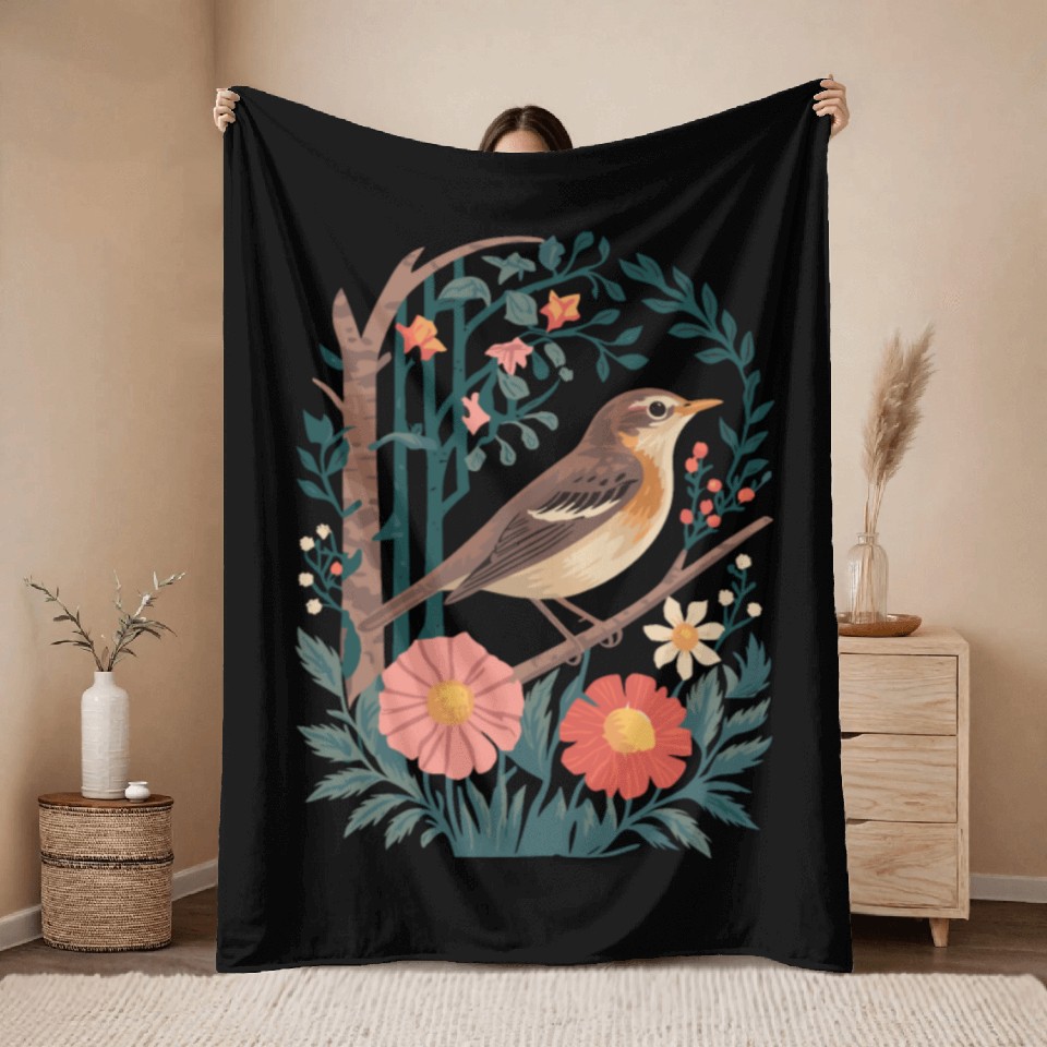 Shop for attractive Cottagecore Bird and Floral Harmony Throw Blankets or see more Throw Blankets products on https://printblur.com right now!