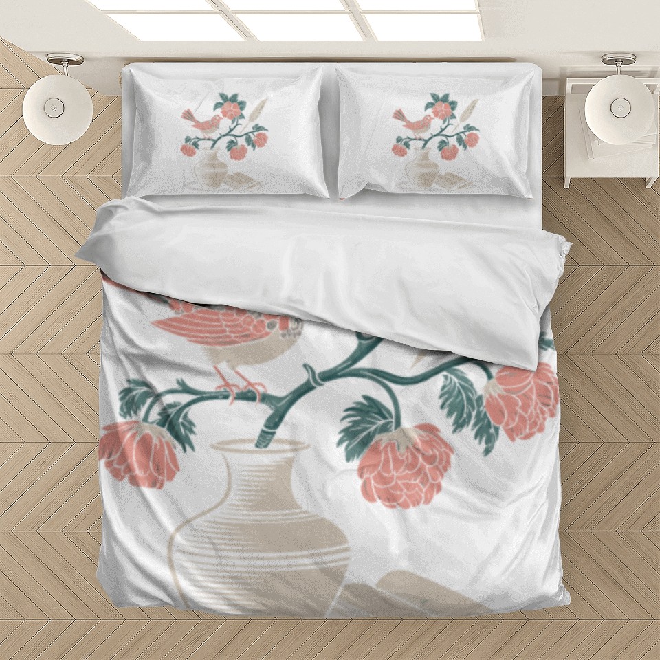 You are shopping for a stunning and trendy product Cottagecore Bird and Floral Vase Art Bedding Sets For WHITE belong theme Bedding Sets at Printblur