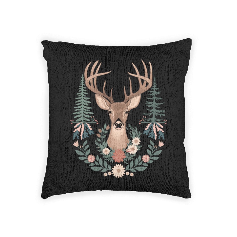 Shop for attractive Cottagecore Deer with Floral Wreath and Evergreen Woven Pillows or see more Woven Pillows products on https://printblur.com right now!