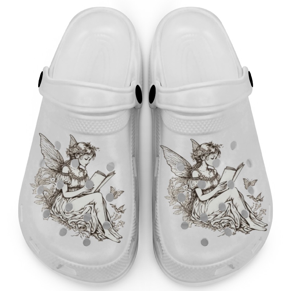 You are viewing one of the trendiest products Cottagecore Fairy Reading Book Librarian Bookworm Clogs For Kids WHITE belong theme Clogs at Printblur