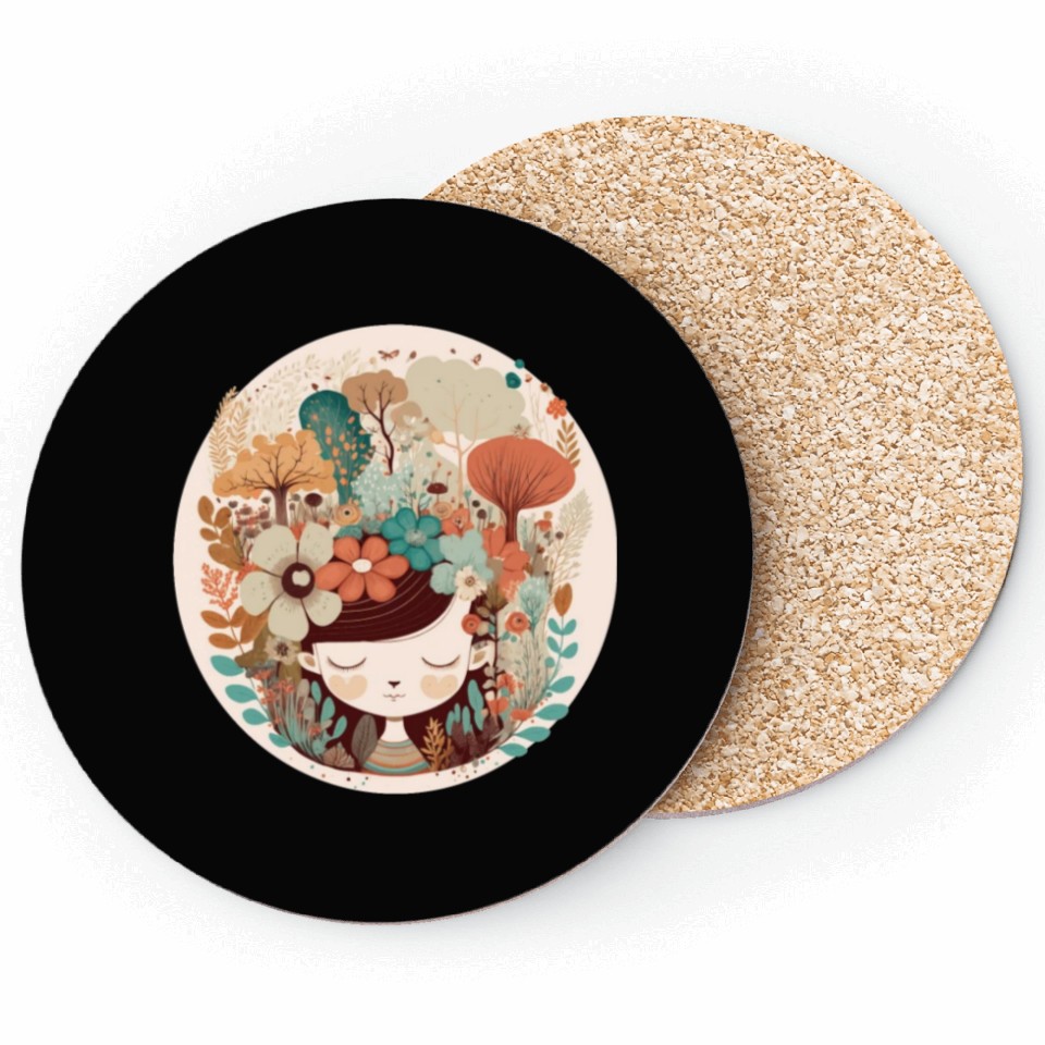 Buy eye-catching Cottagecore Girl Flower Forest Mental Health Aware Coasters or see more Coasters products at Printblur shop now to explore many surprises from our shop!