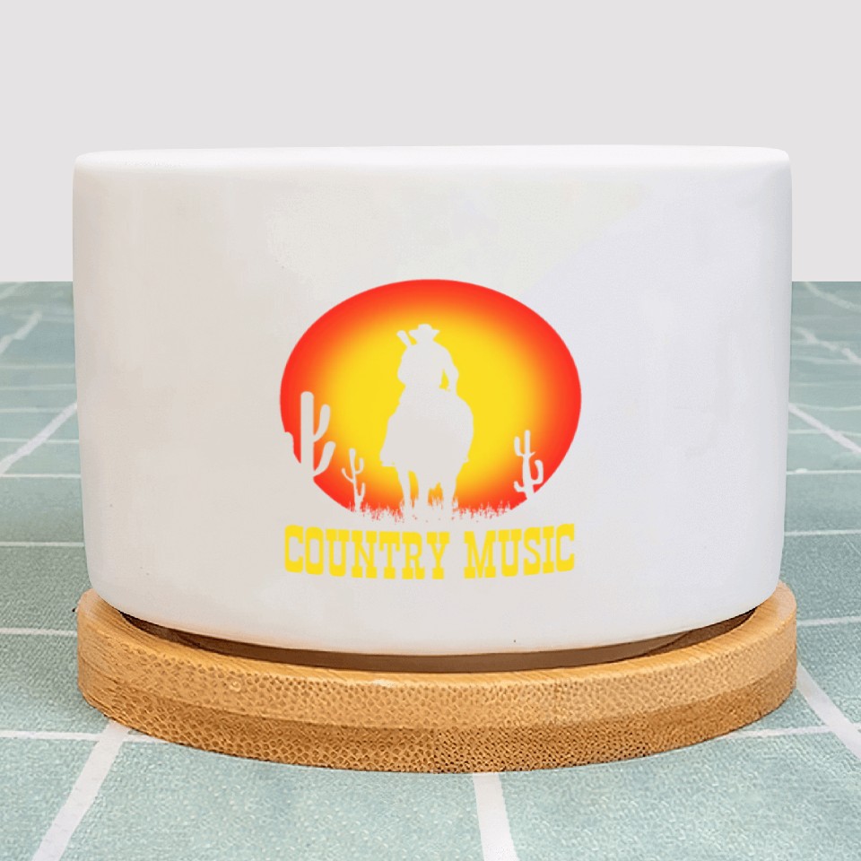 You are shopping for a stunning and trendy product country music cowboy on horse with guitar - sunset Plant Pots For WHITE belong theme Plant Pots at Printblur