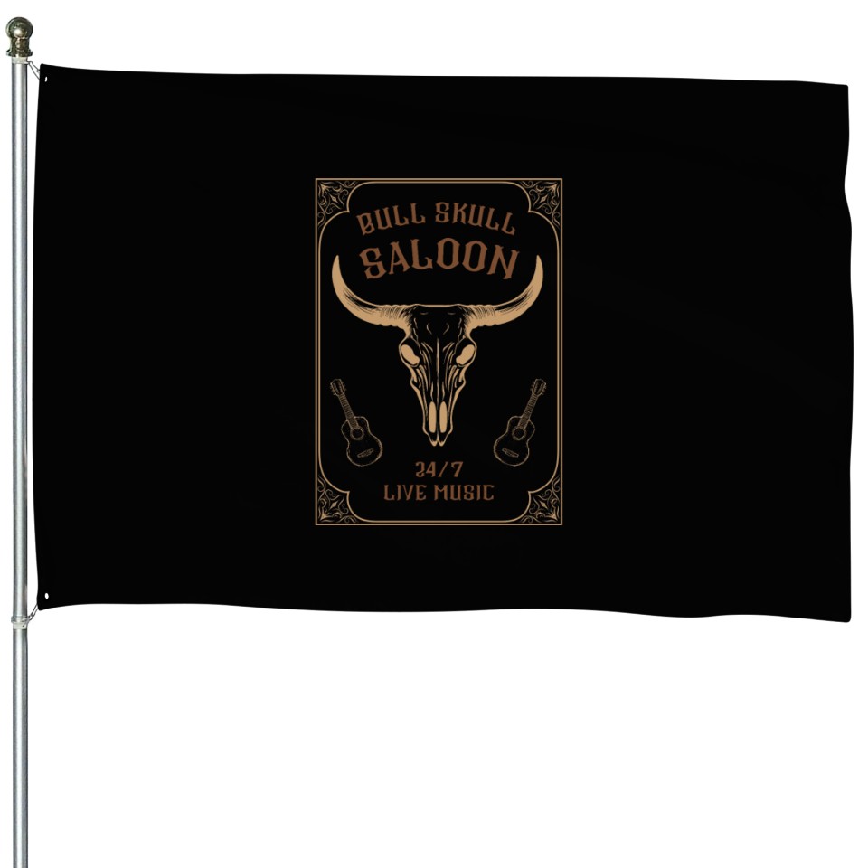 Shop for attractive Country Music Western Bull Skull Saloon House Flags or see more House Flags products on https://printblur.com right now!
