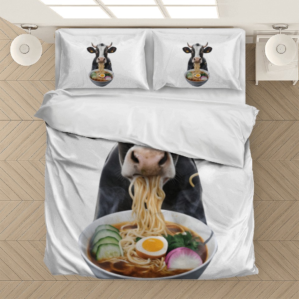 Shop for impressive Cow Eating Ramen Realistic Bedding Sets or see more Bedding Sets products right now on Printblur to enjoy your happiness!